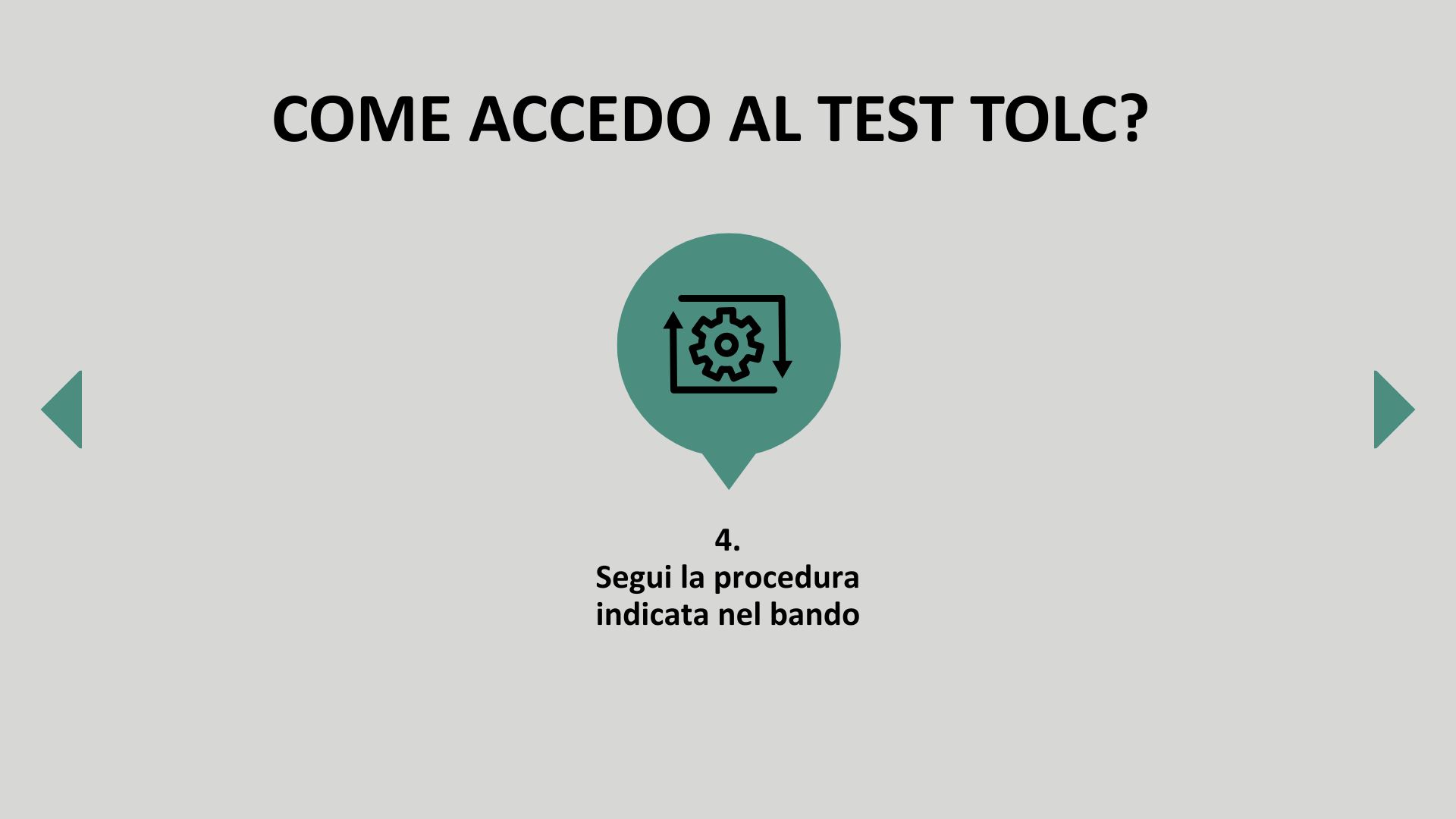 Tipologie: esistono diverse tipologie di TOLC, ognuna specifica per determinati corsi di laurea (es. TOLC-I per Ingegneria, TOLC-E per Economia, TOLC-F per Farmacia, ecc.).