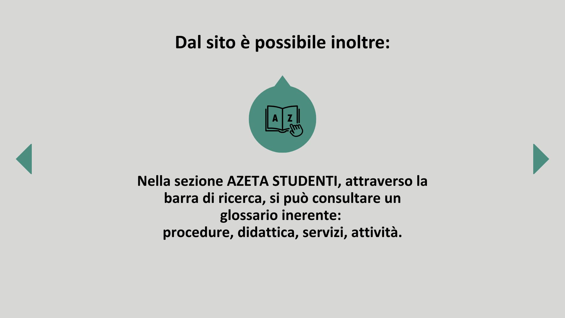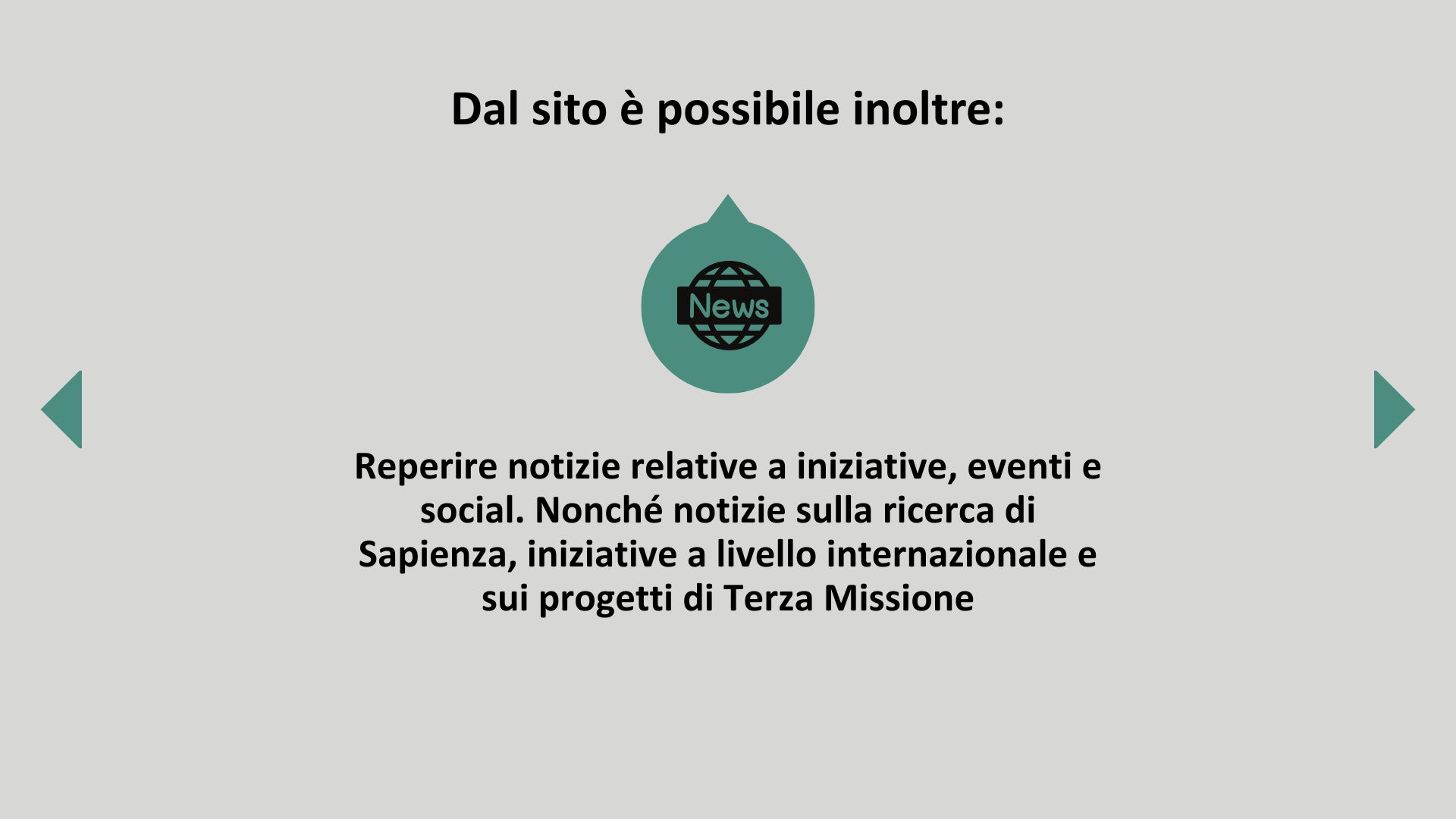Notizie ed eventi: permette di consultare le principali notizie e gli eventi organizzati dall’Ateneo di interesse per gli studenti.
