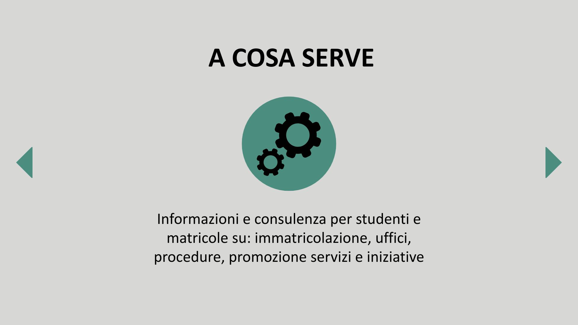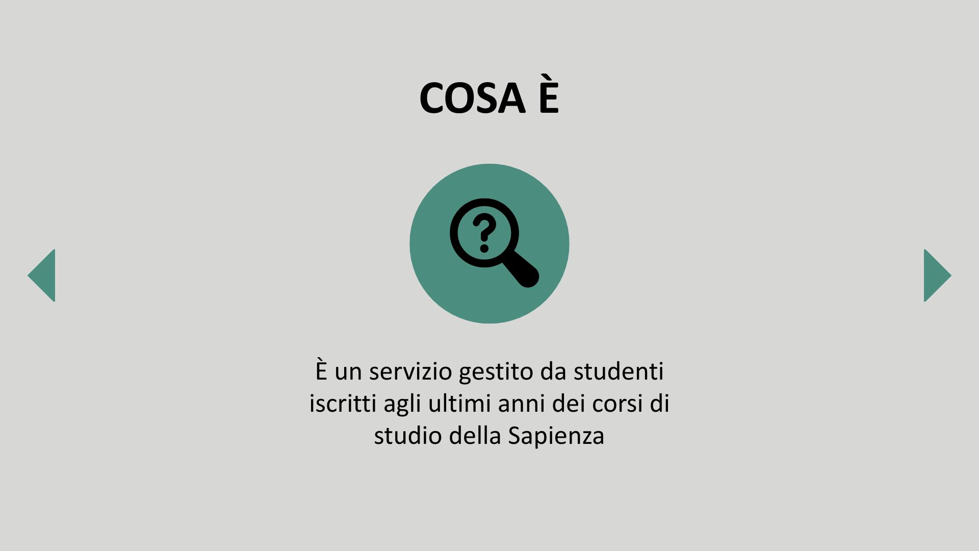 È gestito da studenti che offrono supporto e consulenza, in particolare alle matricole, su questioni legate all’università.