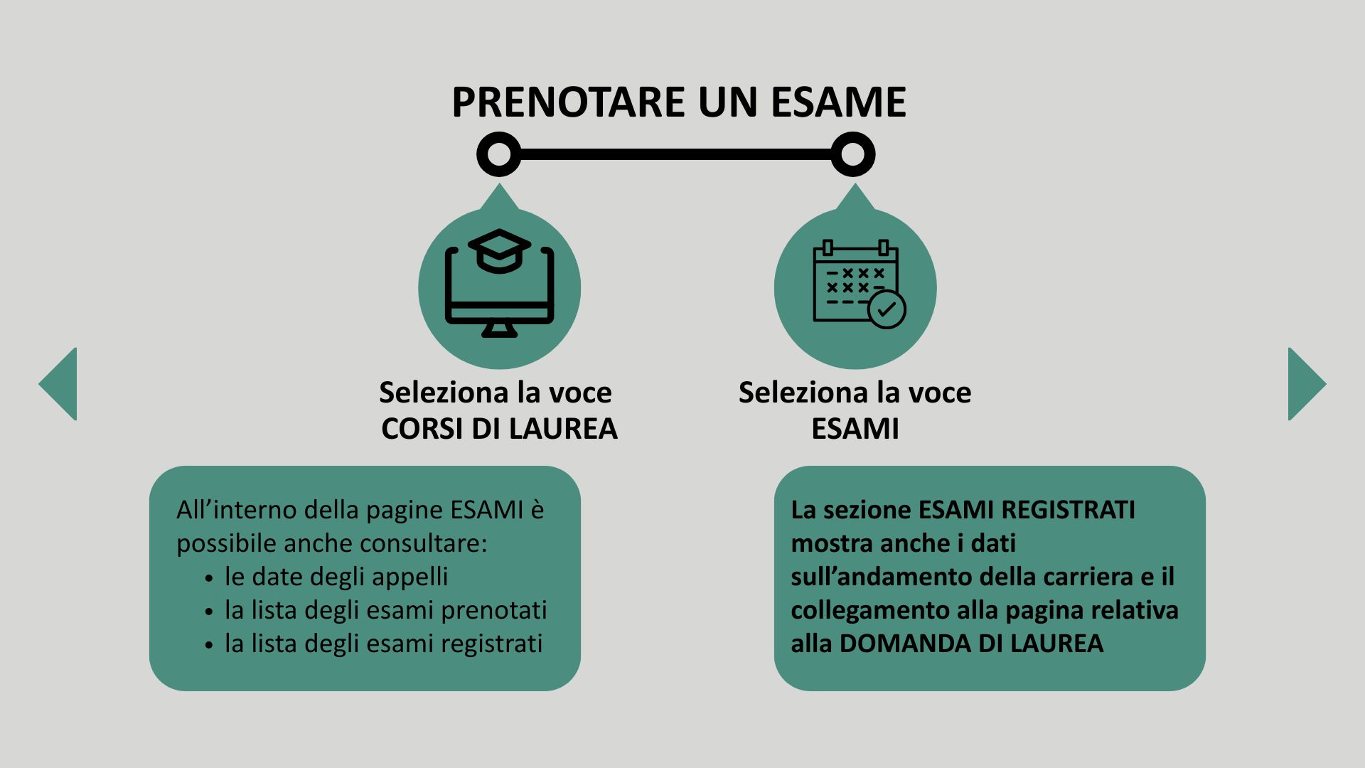 - Prenotazione esami: ti permette di prenotare gli appelli d’esame e di visualizzare i risultati.
