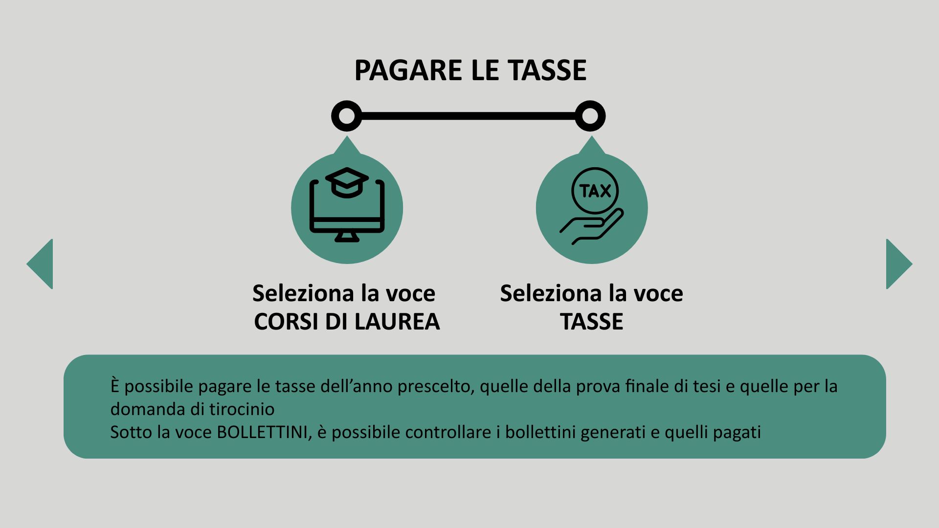 - Pagamento tasse: ti permette di generare e stampare i bollettini per il pagamento delle tasse universitarie.